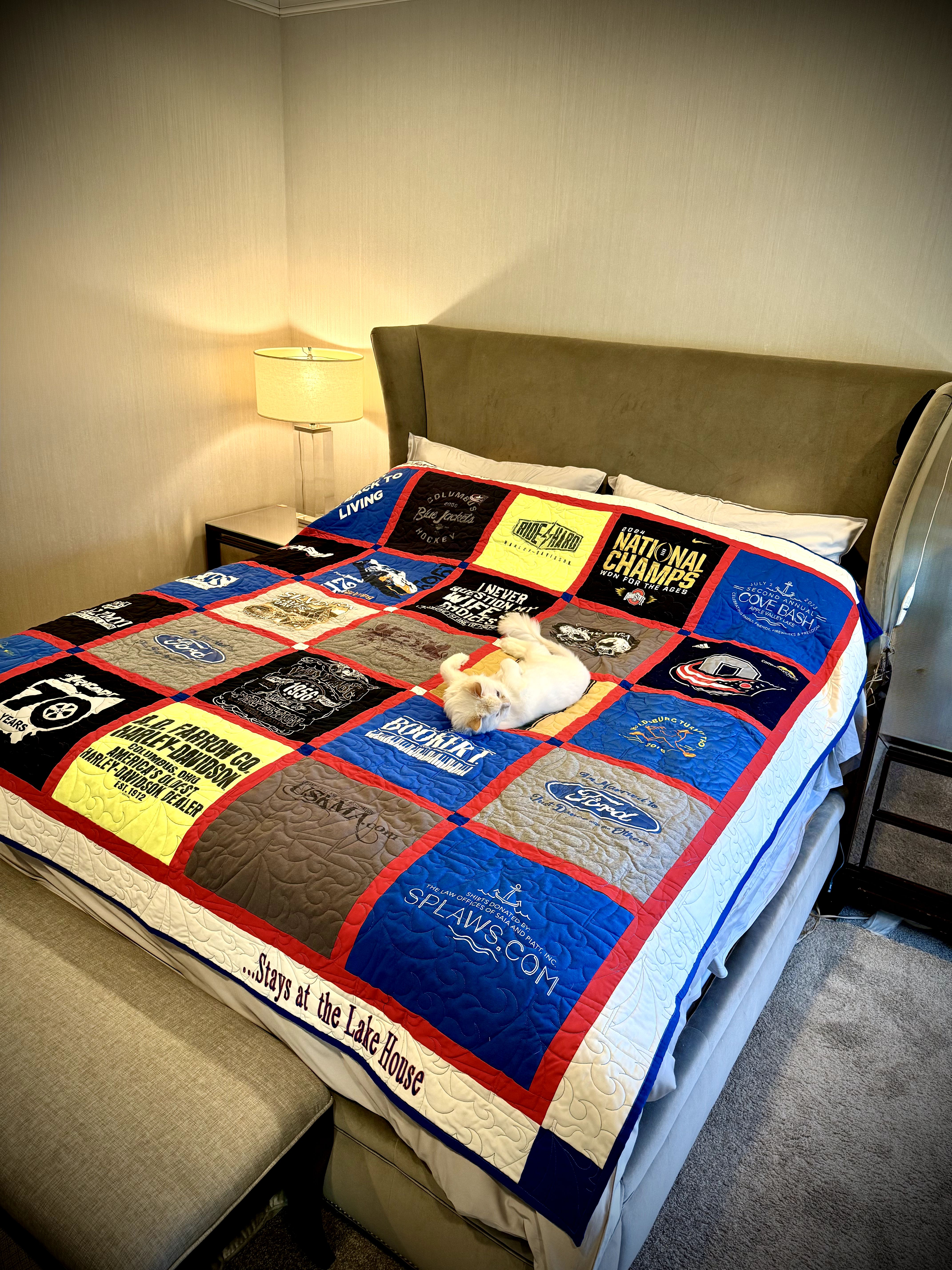 Heirloom Panel™ ensures focal points remain centered and square. When needed, original material from the same jersey is repurposed and secured with precision stitching so the composition remains intentional.