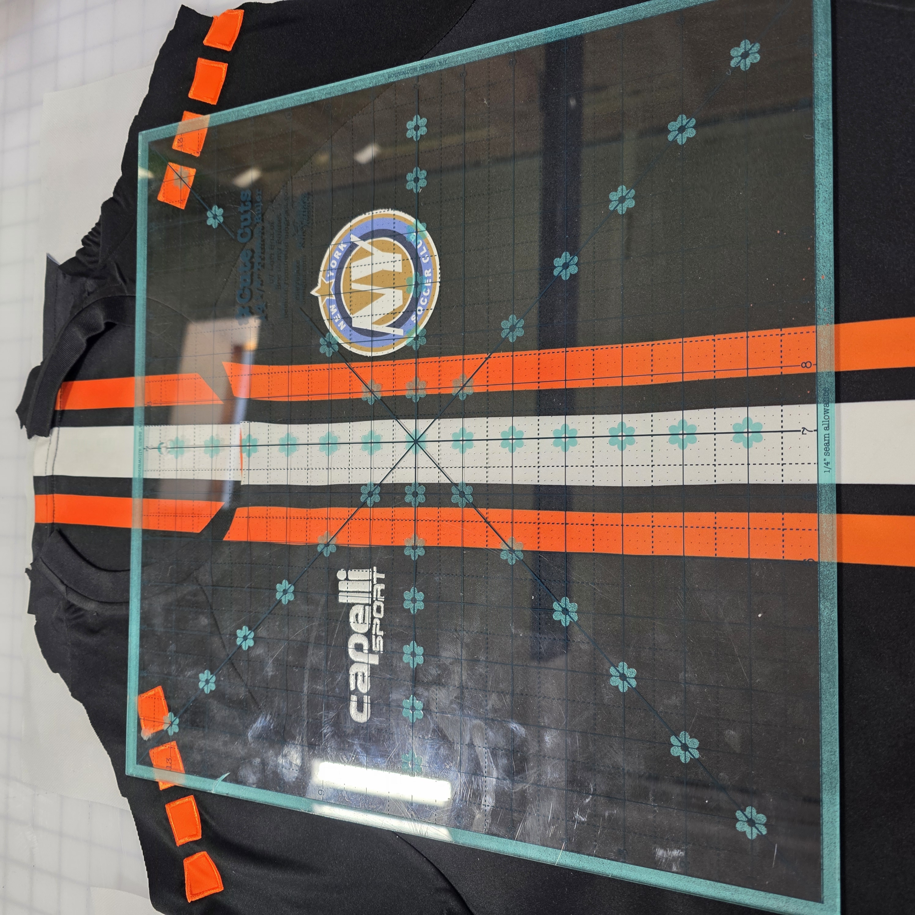 The Stitch Arena executes a locked blueprint. Color, layout, enhancements, embroidery, and any custom printed panels are confirmed before anything is cut.