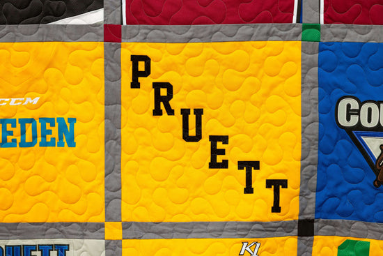 Tailored corner-stoning choices for each blanket, seamlessly blending borders and binding together with your choice of extra jersey materials (Team logo patch, arm #'s, etc.) for a personalized touch.